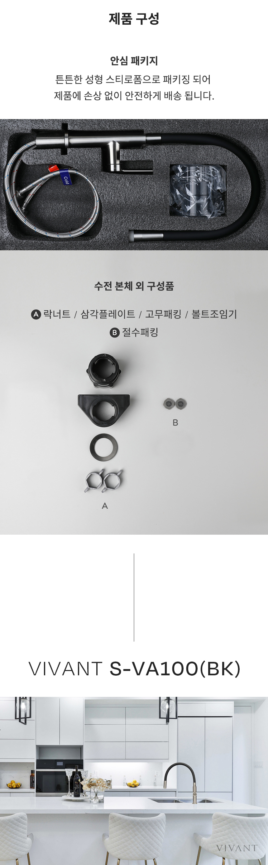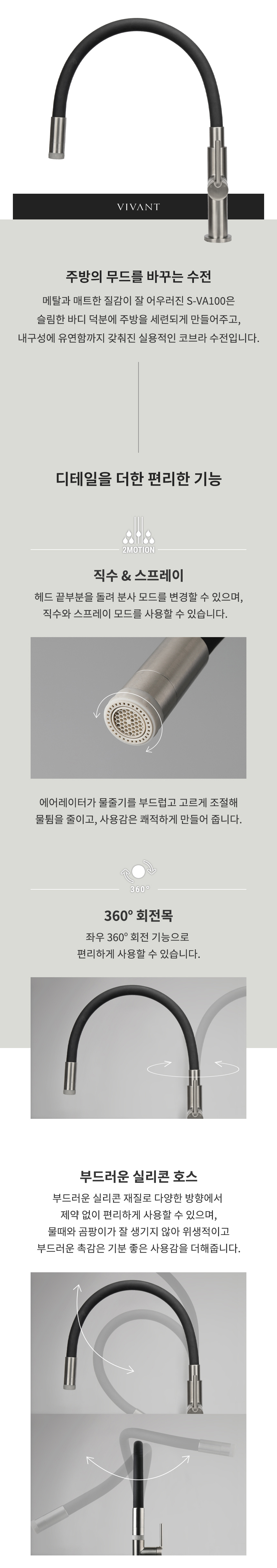 VA100(BK) 블랙 주방 싱크 수전