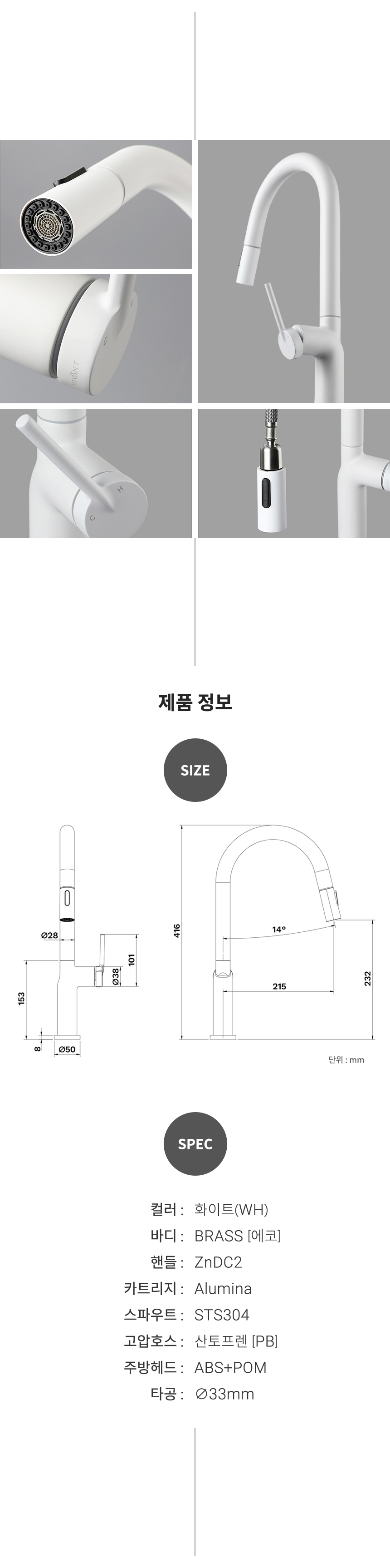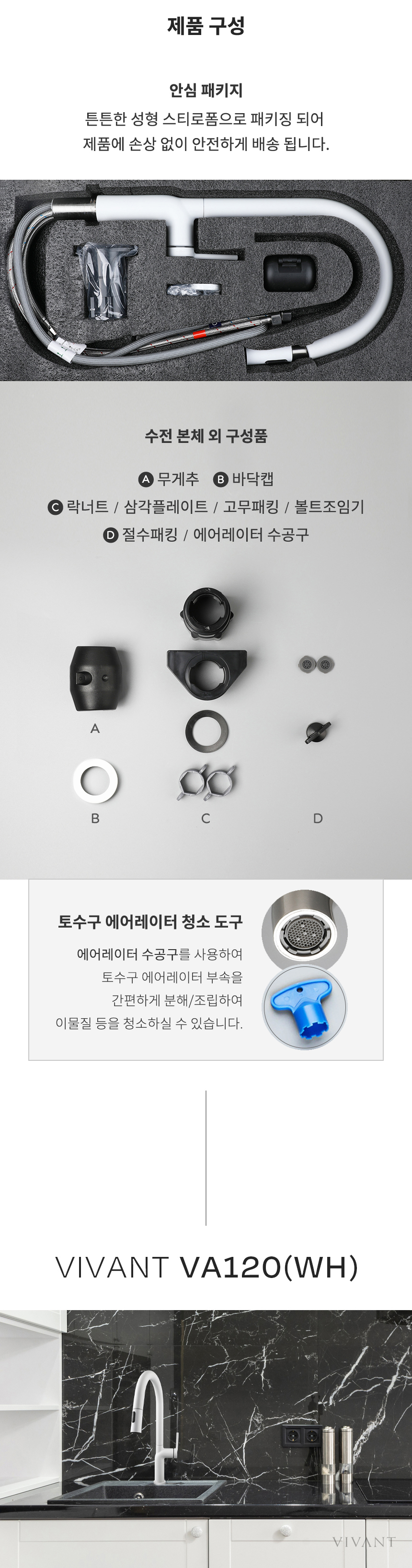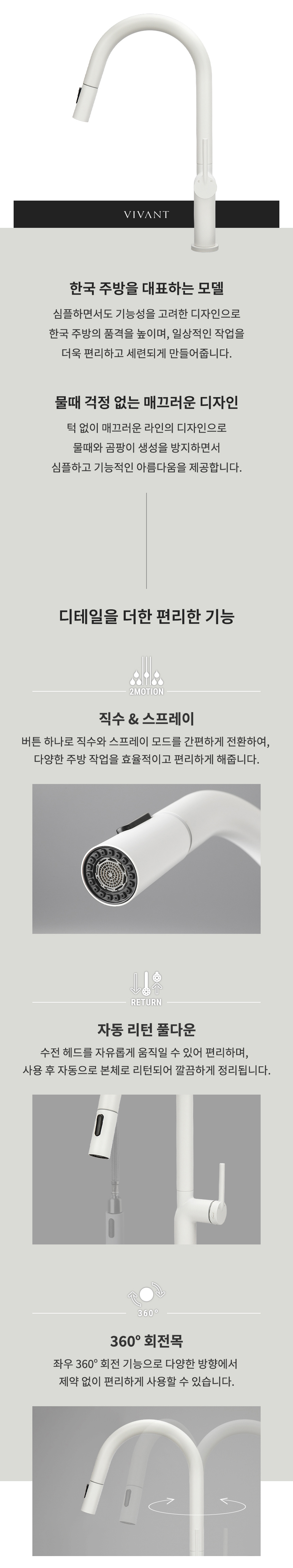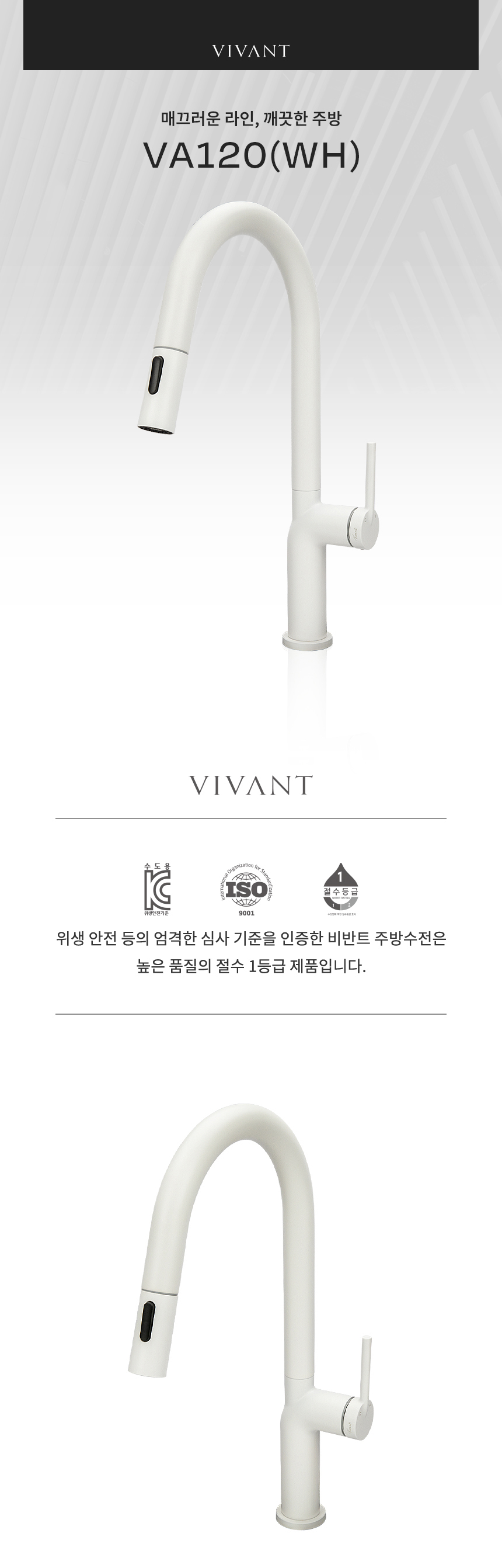 VA120(WH) 화이트 주방 싱크 수전