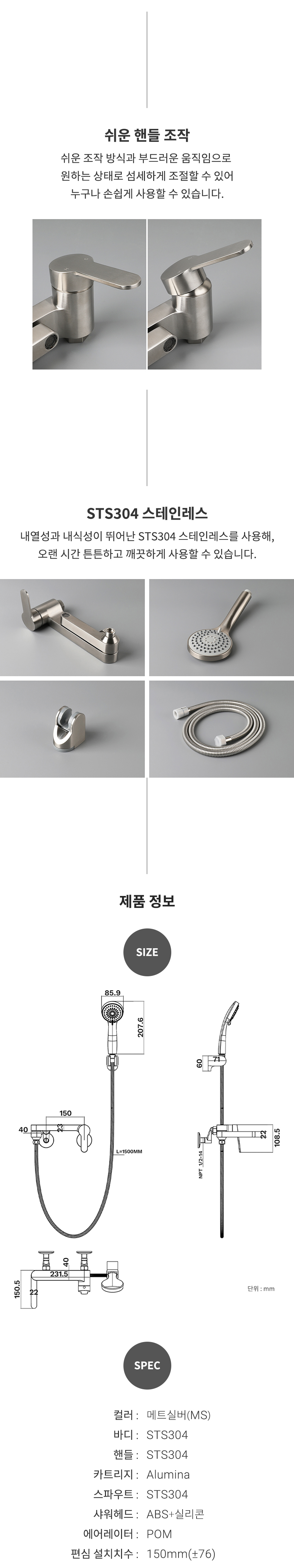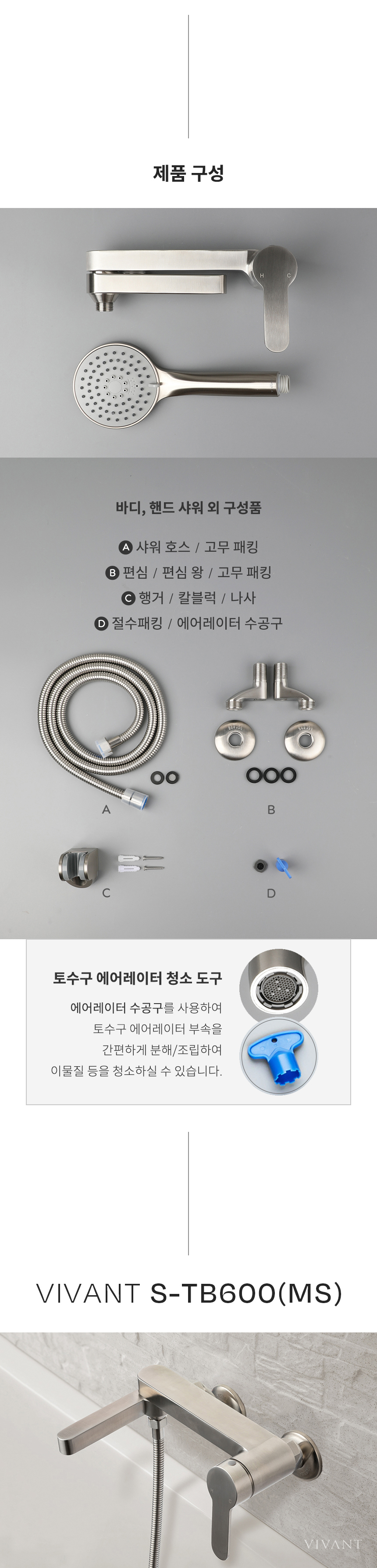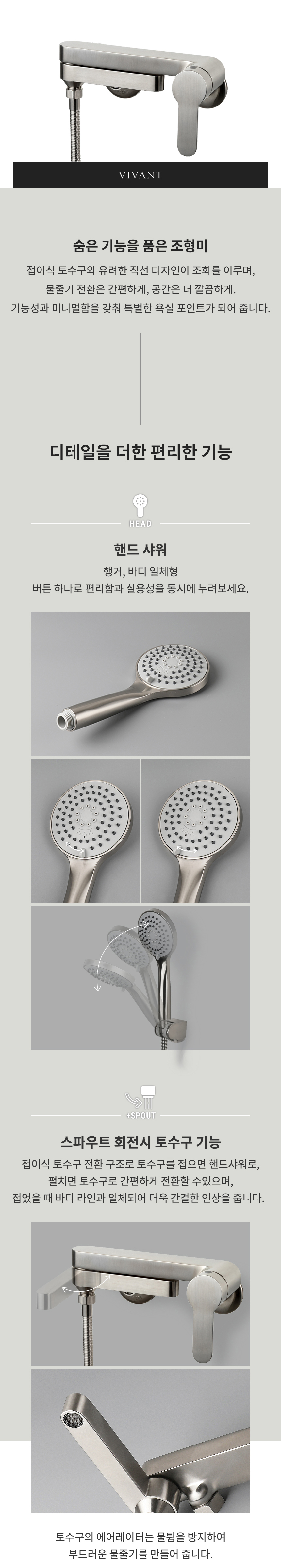 TB600(MS) 매트실버 욕실 토수구 회전 샤워수전