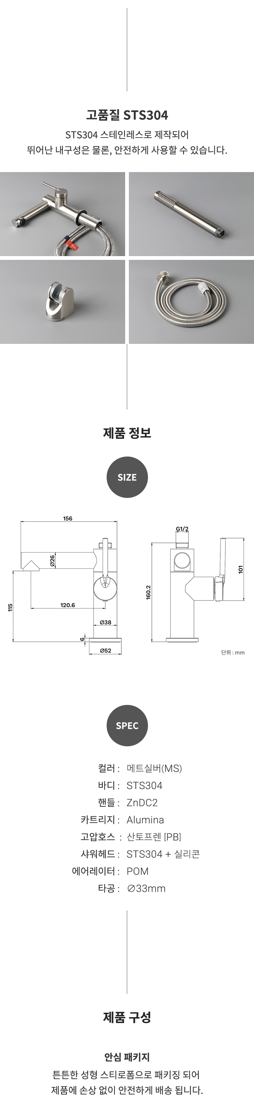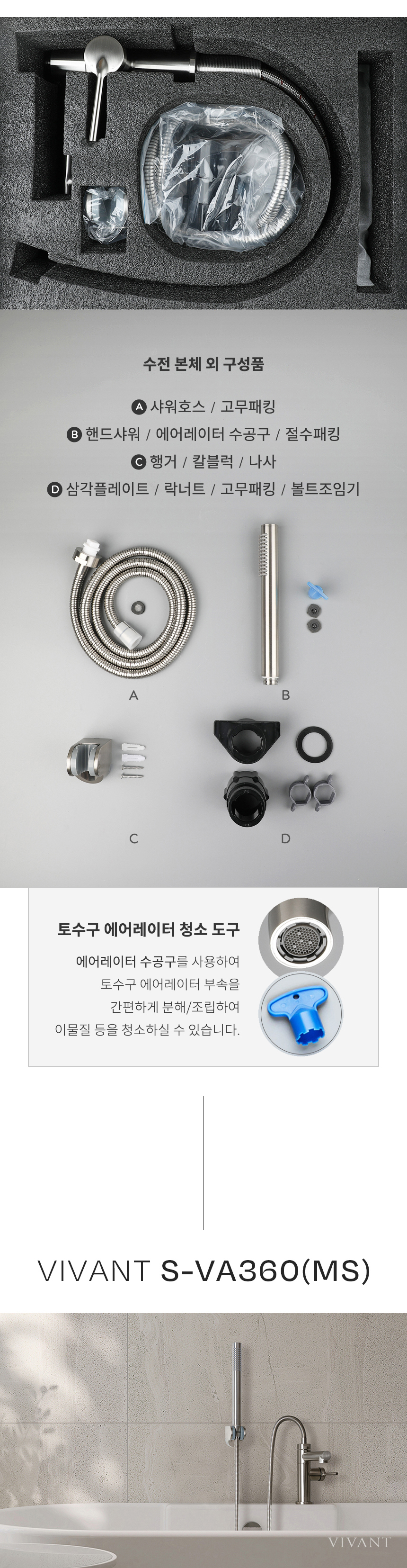 VA360(MS) 매트실버 원홀 욕실 샤워기 세면겸용 샤워수전