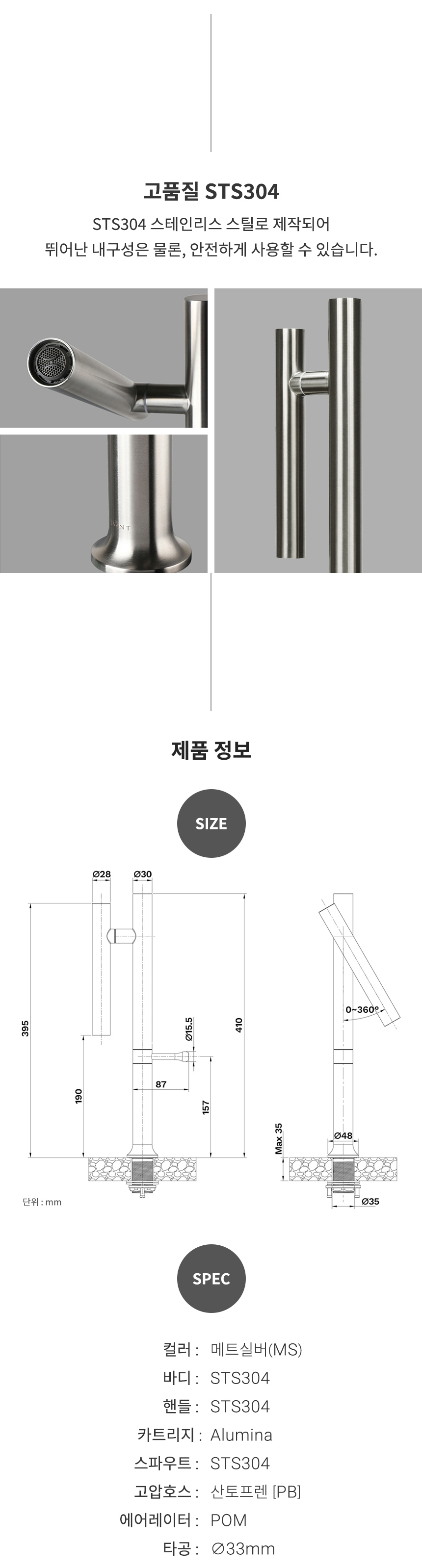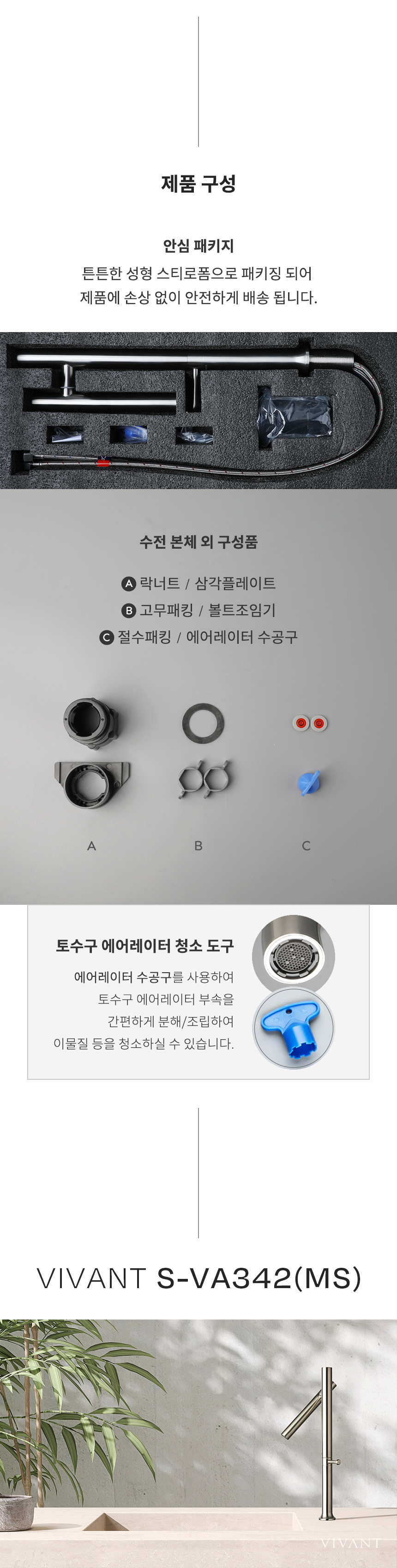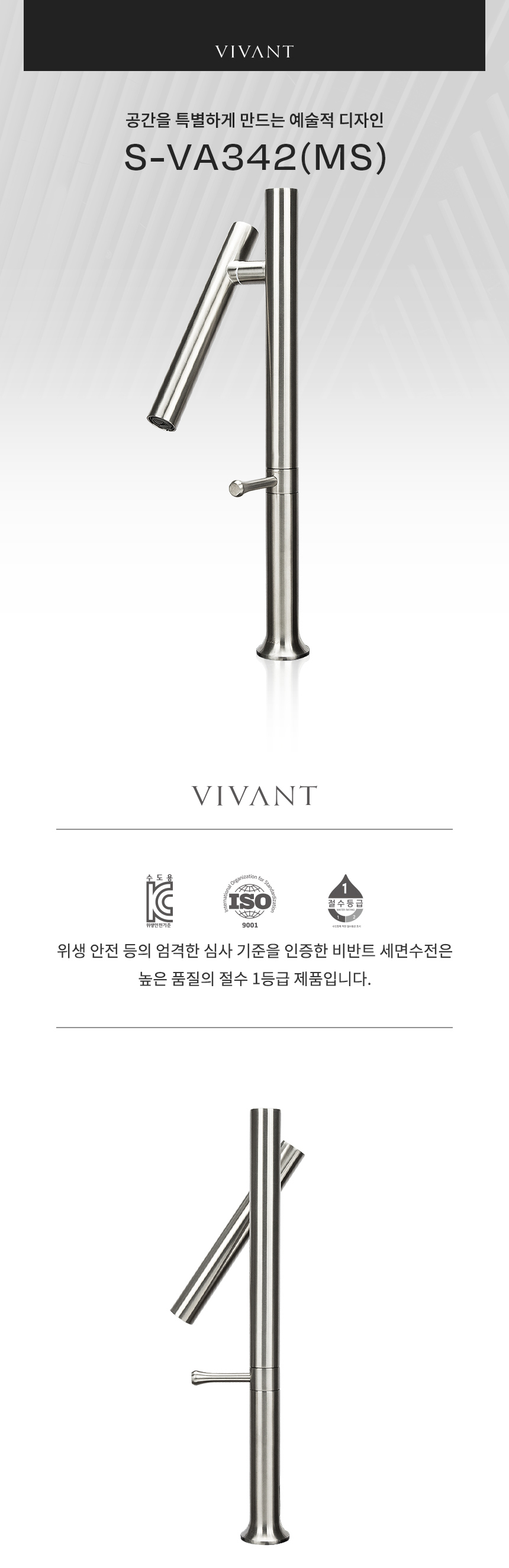 VA342(MS) 매트그레이 원홀 욕실 탑볼형 세면대 수전