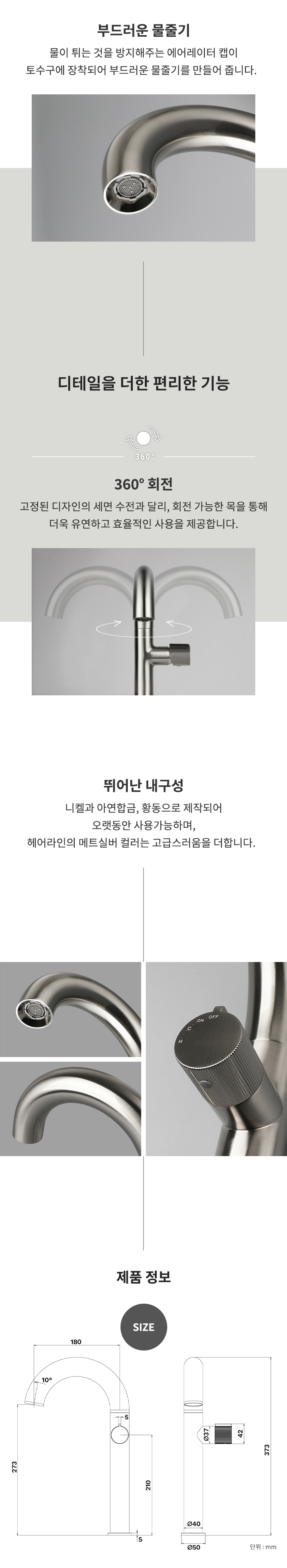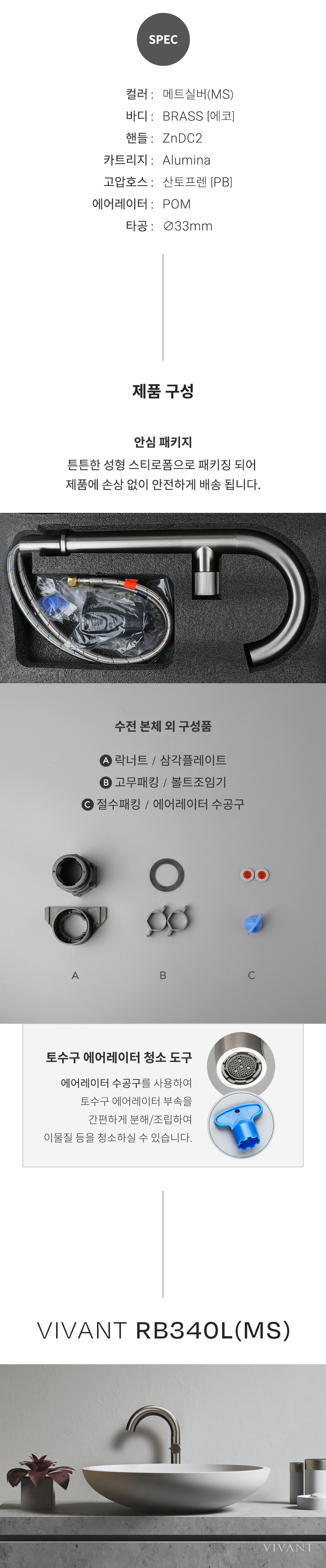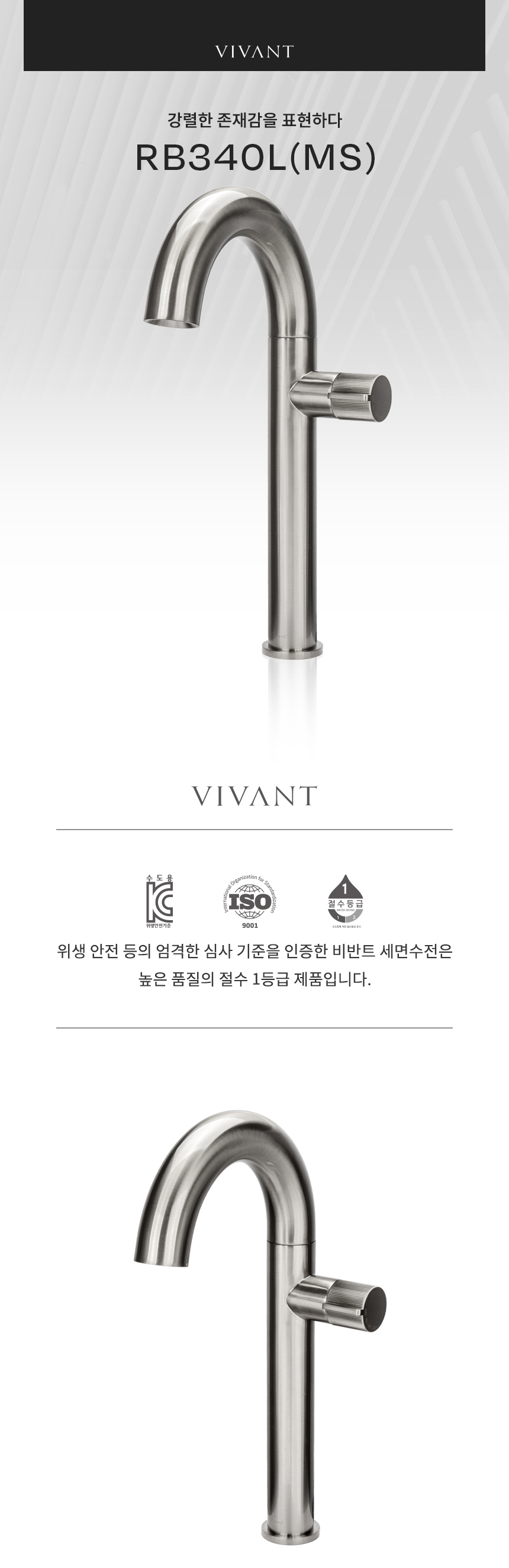 RB340L(MS) 매트실버 욕실 원홀 탑볼 세면대수전