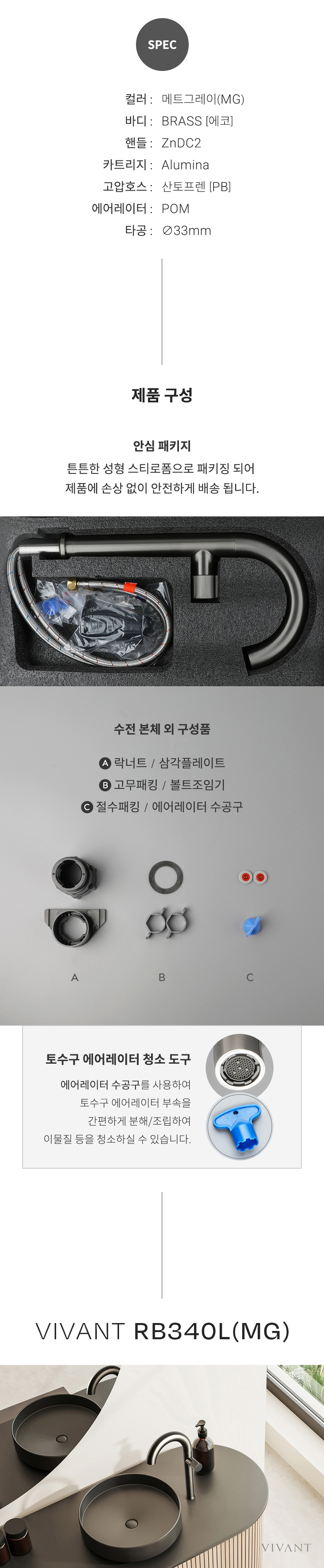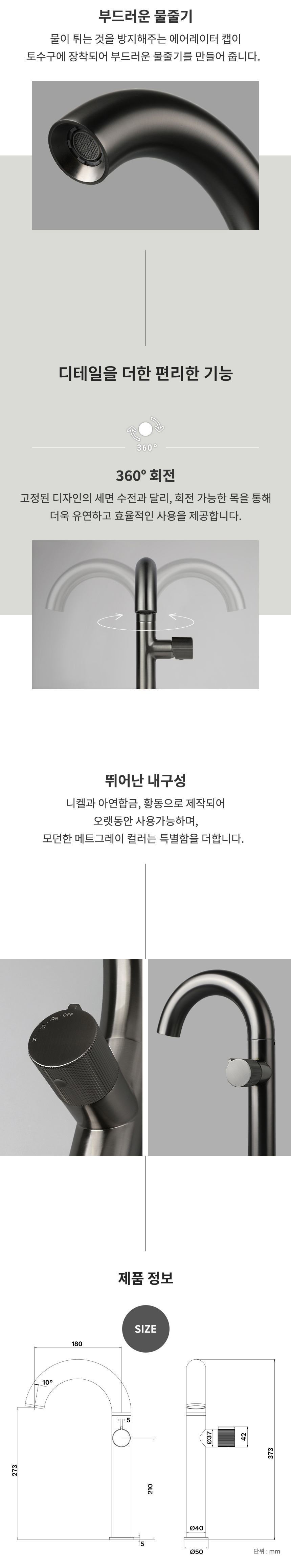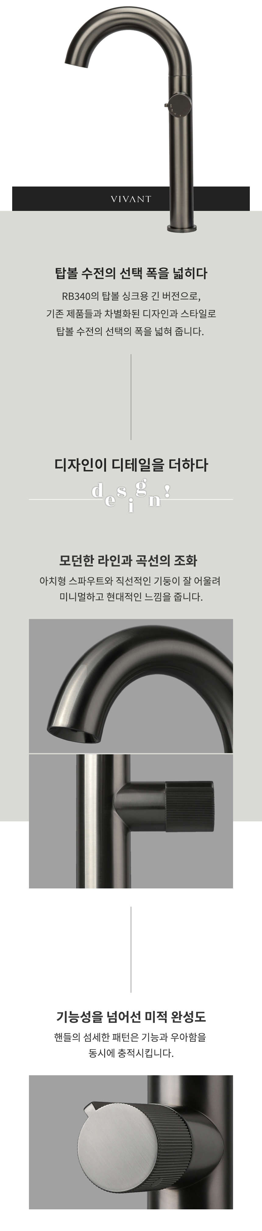 RB340L(MG) 매트그레이 욕실 원홀 탑볼 세면대수전