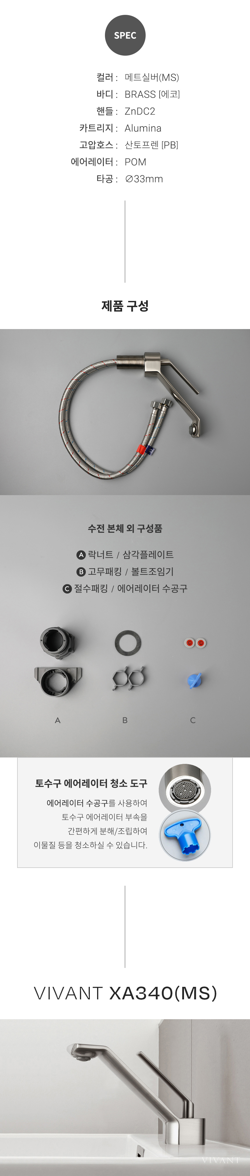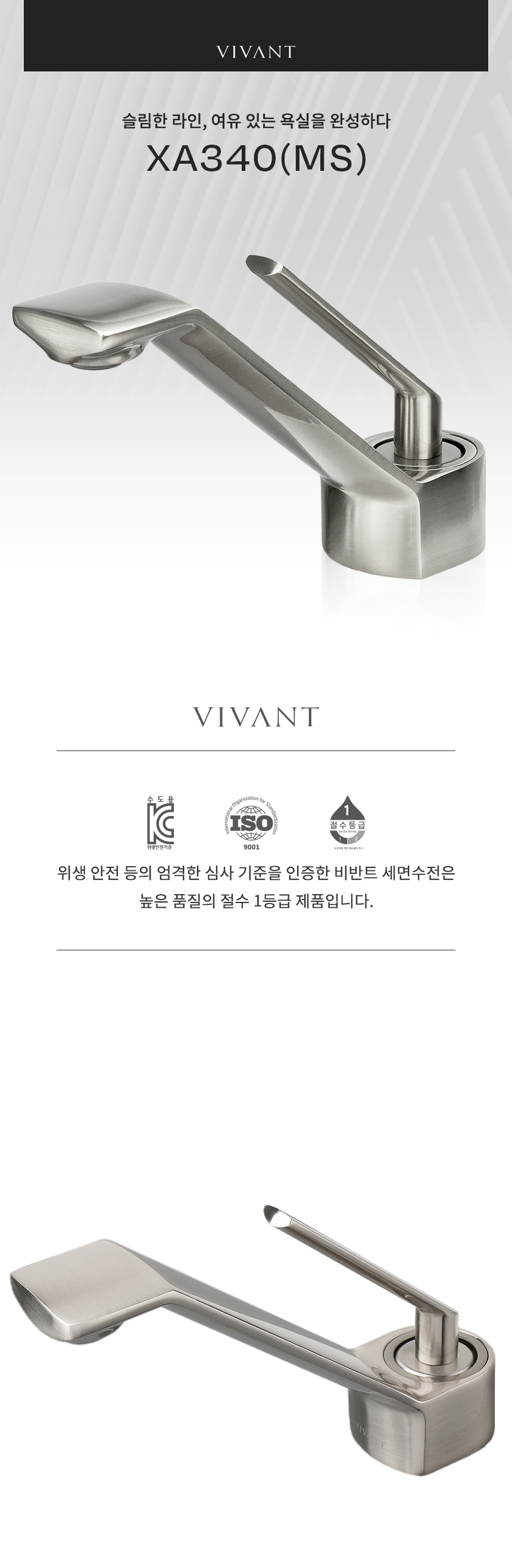 XA340(MS) 매트실버 욕실 원홀 세면대수전