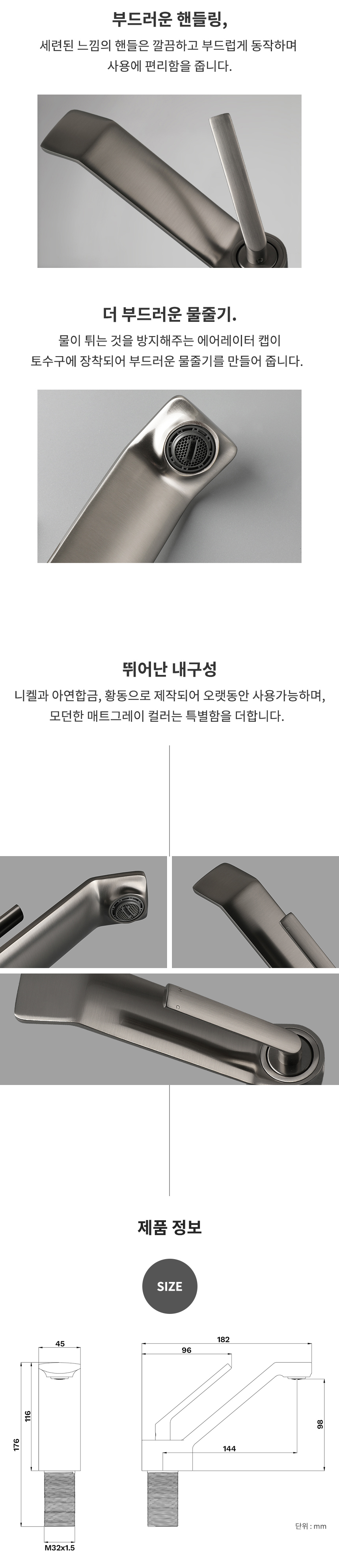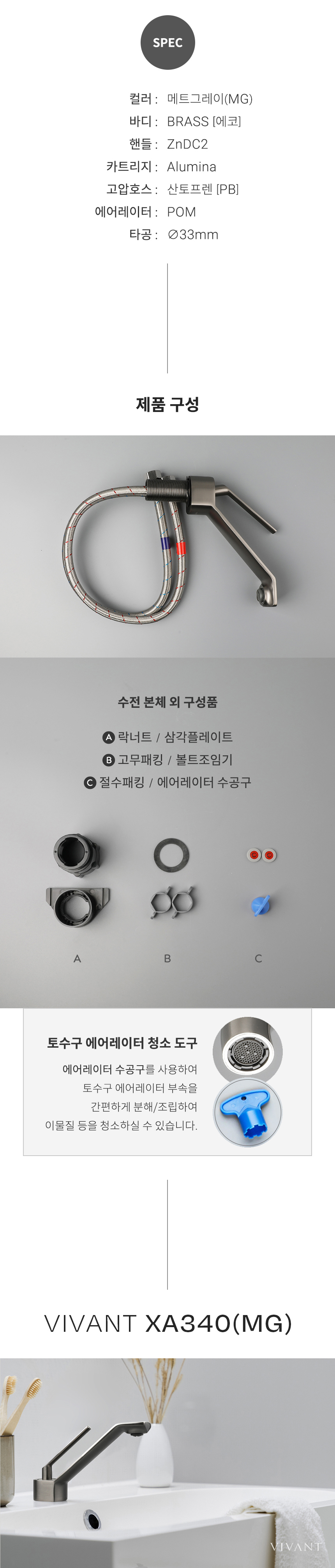 XA340(MG) 매트그레이 욕실 원홀 세면대수전