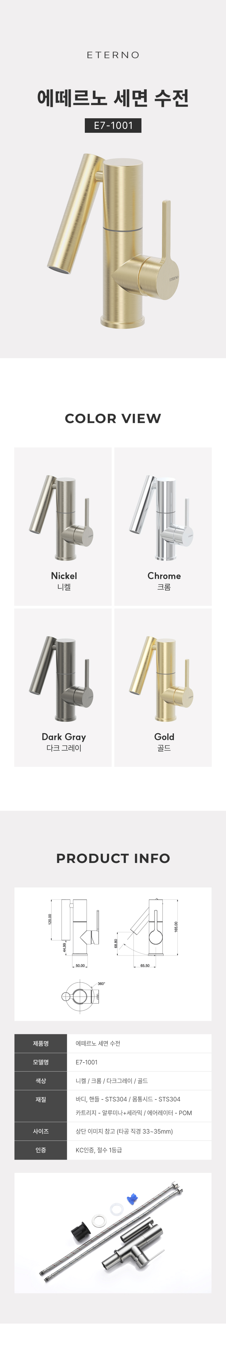 E7-1001 골드 원홀 세면대 수전