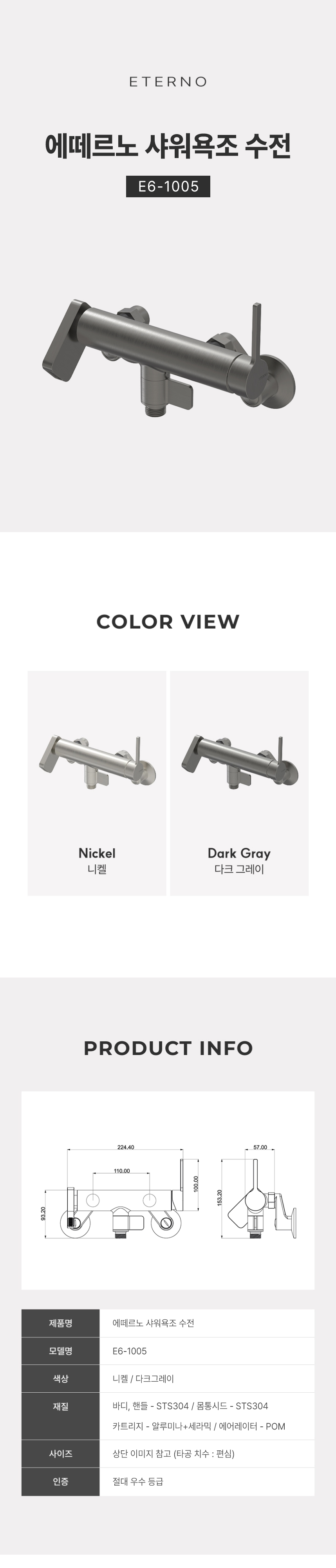 E6-1005 다크그레이 샤워 수전
