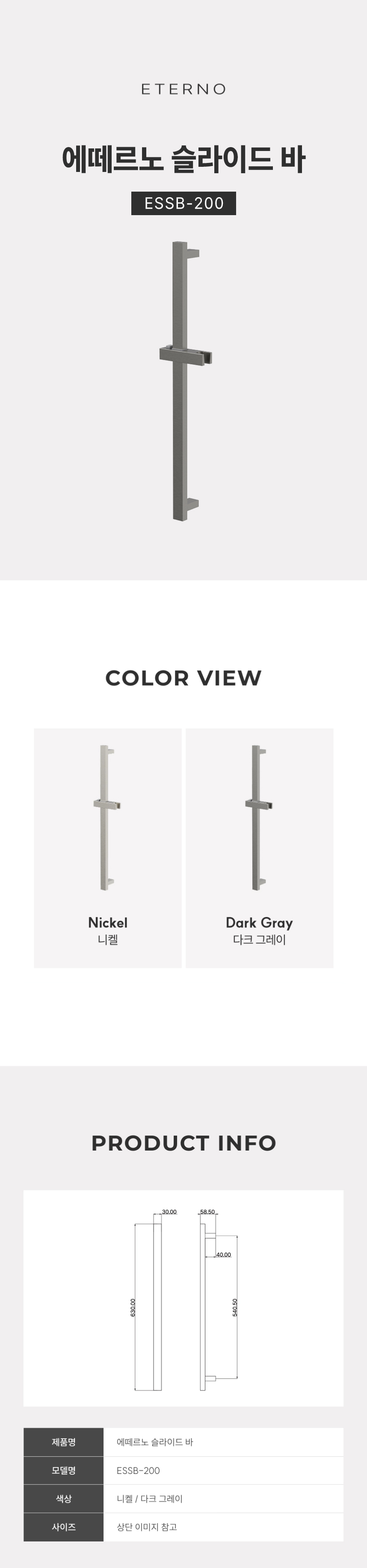 ESSB-200 다크그레이 사각 슬라이드바 행거 샤워기 거치대