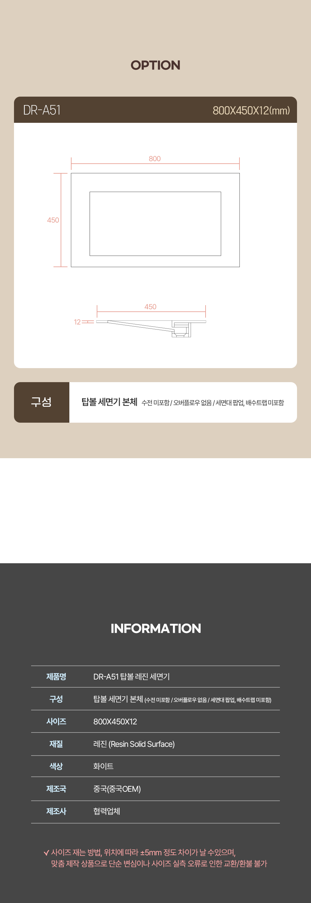 레진 세면기 DR-A51