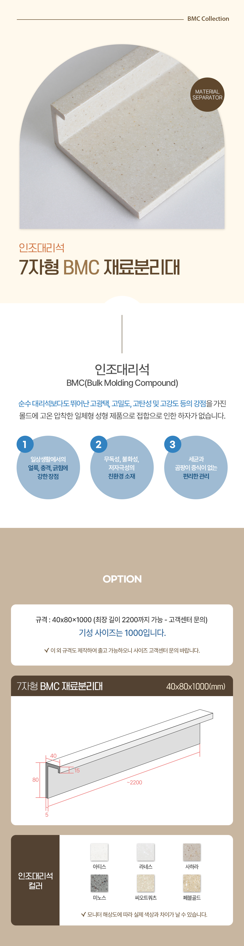 BMC 인조대리석 재료분리대
