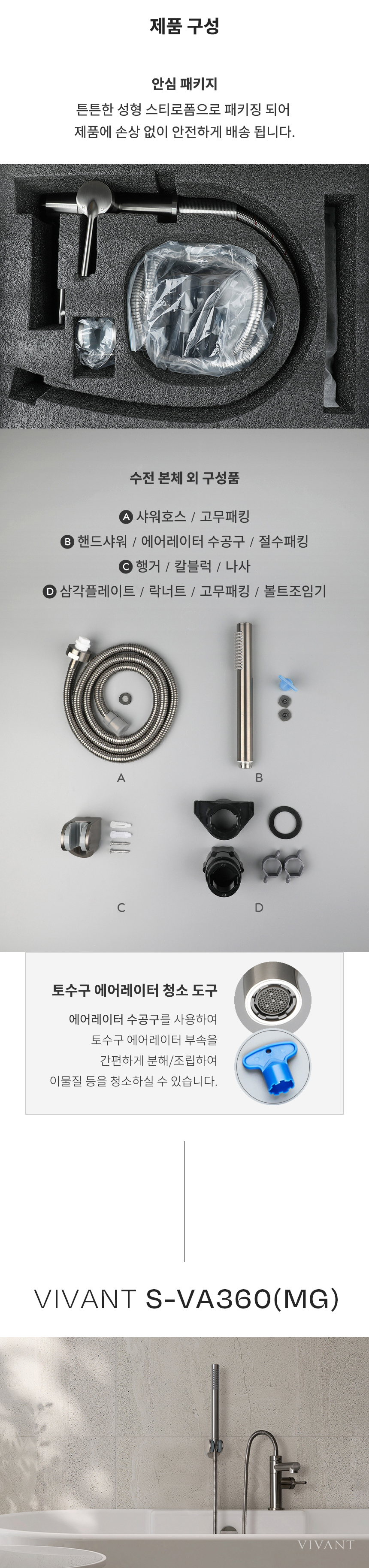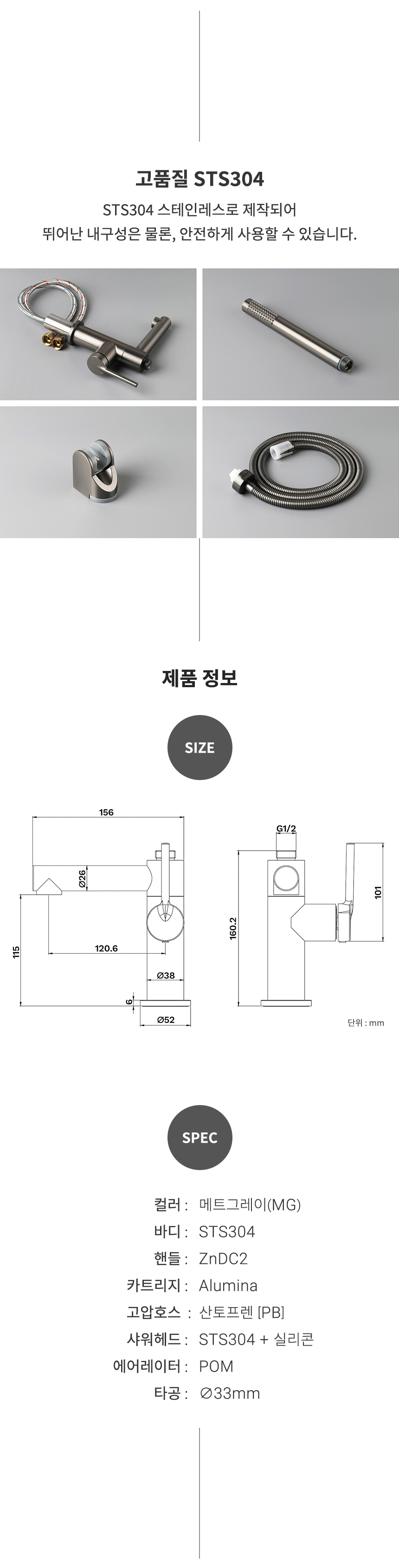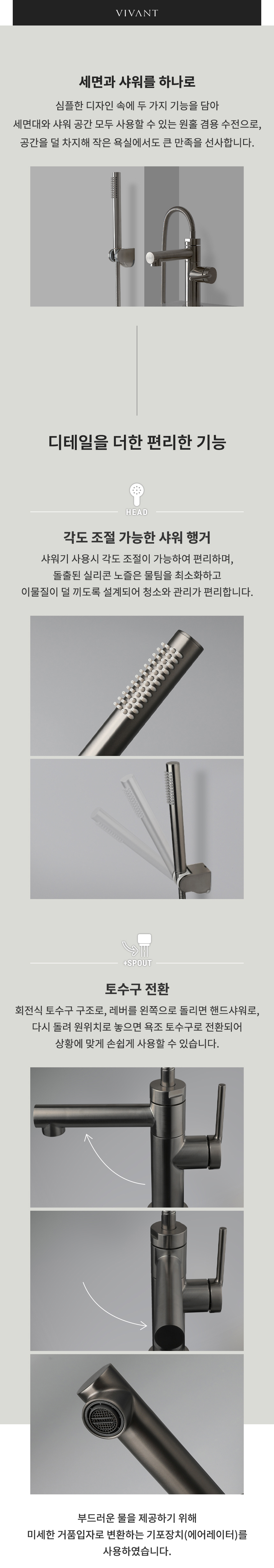 VA360(MG) 매트그레이 원홀 욕실 샤워기 세면겸용 샤워수전