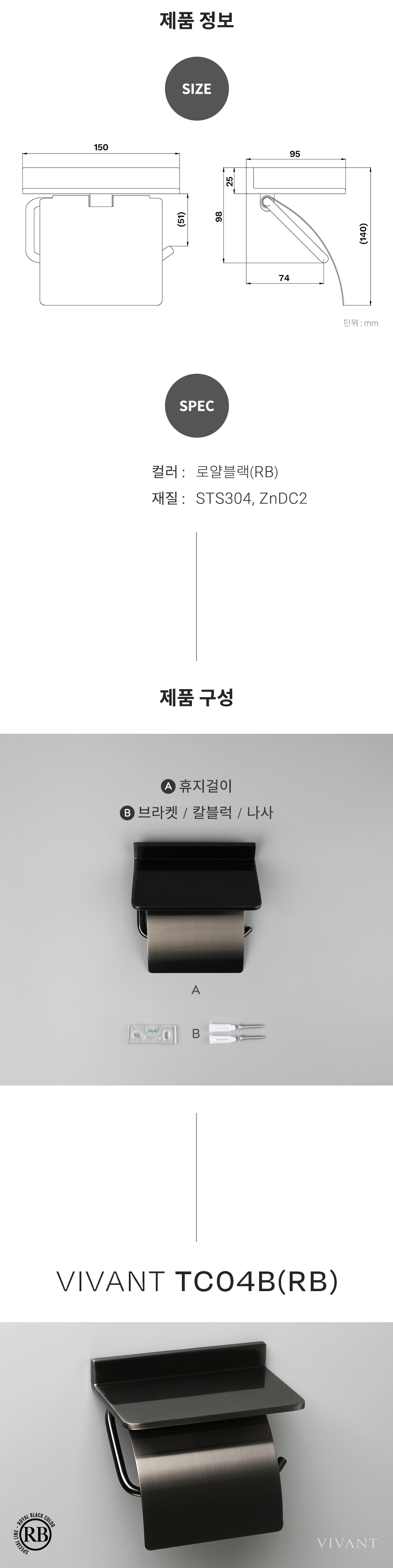 TC04B(RB) 로얄블랙 욕실 휴지걸이