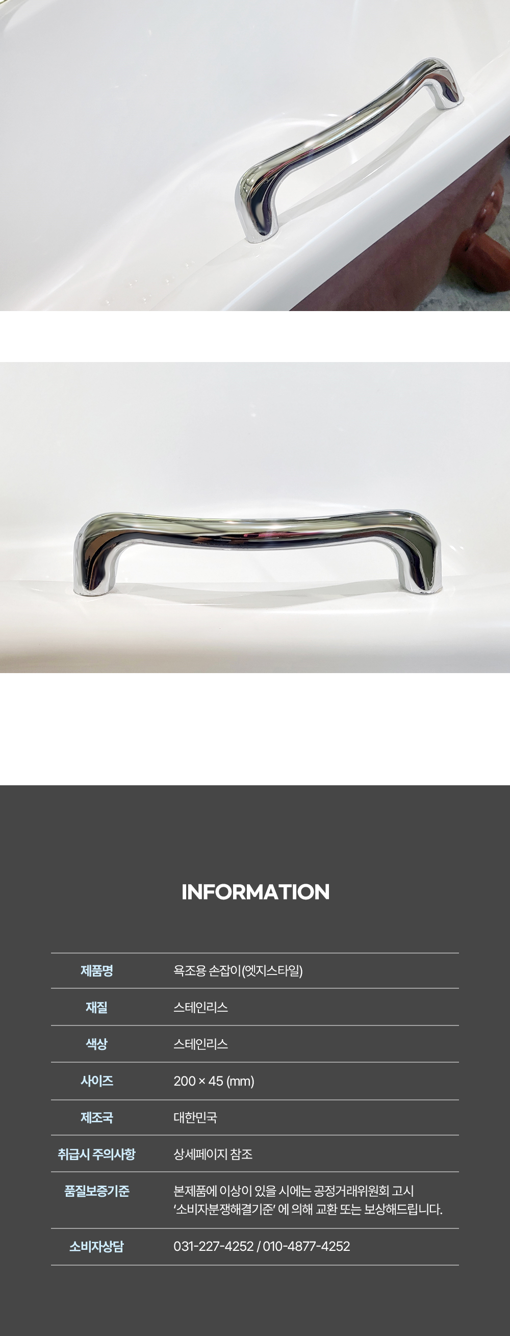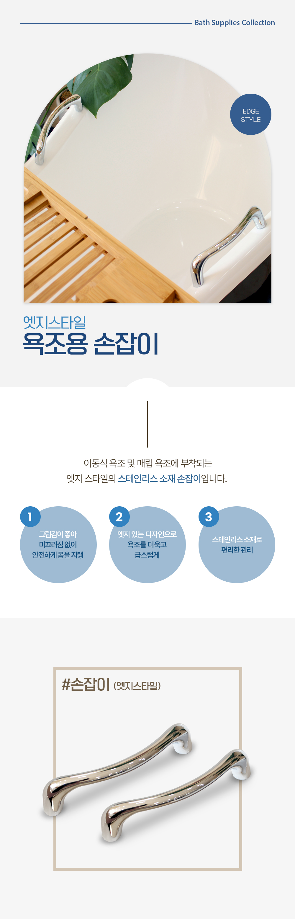 스테인리스 욕조 손잡이 1ea 욕실안전바 지지대